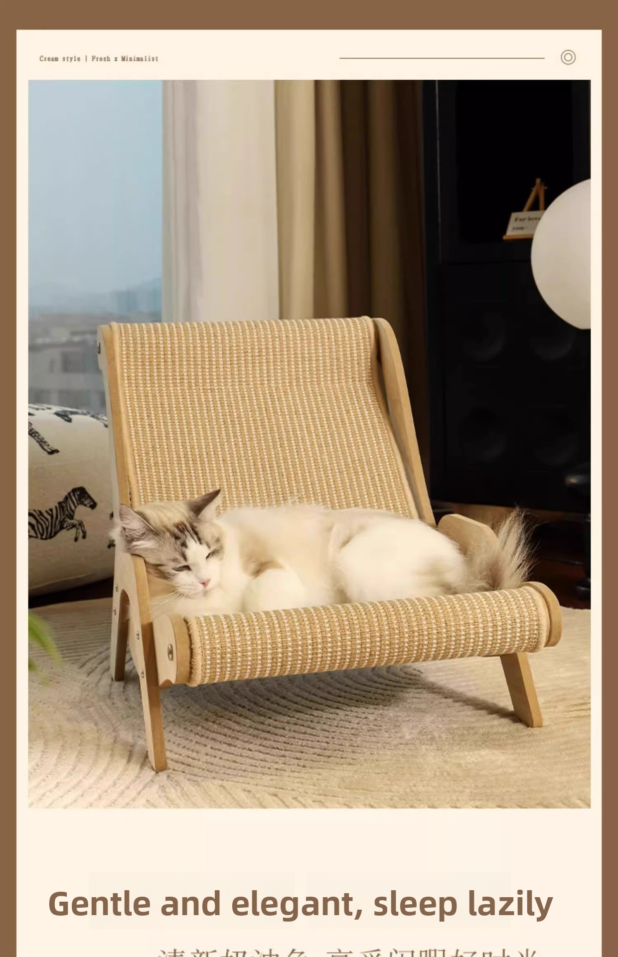Wooden Cat Lounge Chair with Sisal Scratching Pad
